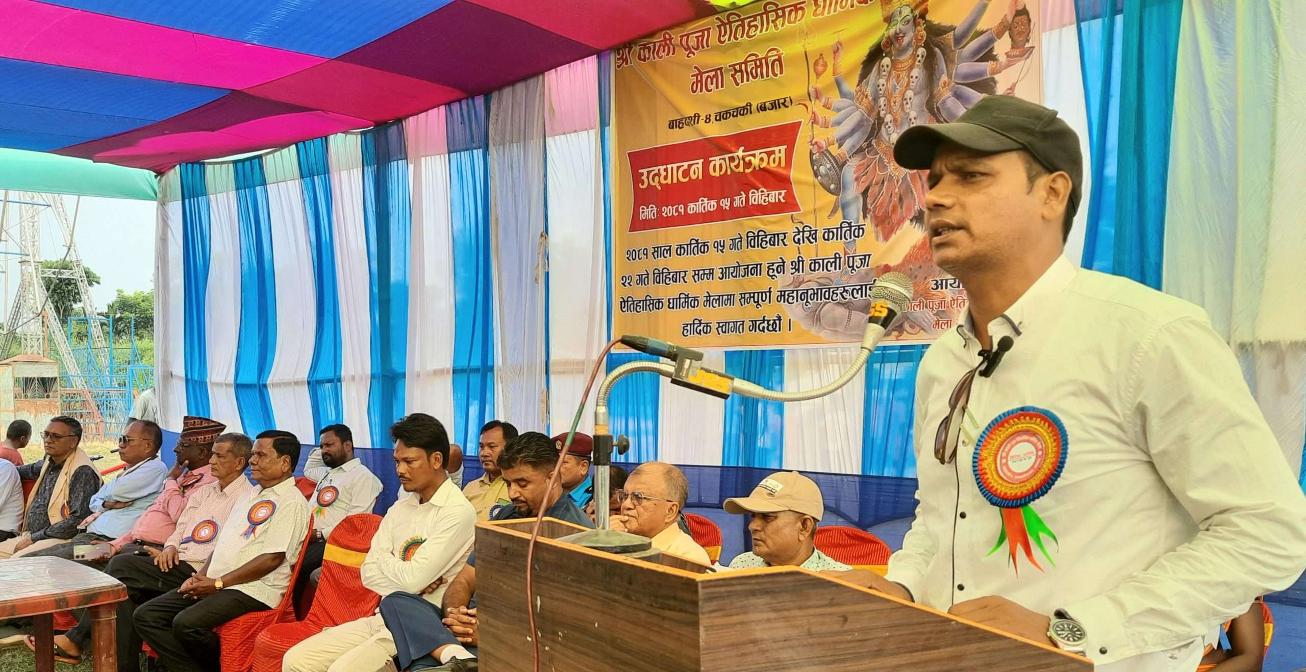 झापाको बाह्रदशी गा.पा. वडा-४ स्थित चकचकी बजारमा आज देखि कार्तिक २२ गते सम्म आयोजना हुने श्री काली पुजा धार्मिक मेलाको उद्घाटन सम्पन्न भएको छ । कार्यक्रमको प्रमुख अतिथि समेत रह्नु भएका बाह्रदशी गा. पा.अध्यक्ष देबिन्द्र प्रसाद चम्लागाइले आज एक कार्यक्रमका बिच ब्यानर पढेर मेलाको उद्घाटन गर्नु भएको हो। उद्घाटन कार्यक्रममा बिशिस्ट अतिथिको रुपमा बाह्रदशी गा.पा.वडा न ४ का वडा अध्यक्ष मह्ताब आलम, बाह्रद्शी गा.पा. की उपाध्यक्ष सान्ता खरेल, समाजसेबी दयानन्द गोश्वामी,भगिरत पोद्दार,पुर्व वडा अध्यक्ष समिम मिया, टेक प्रसाद आचार्य लगायत रह्नु भएको थियो।कार्यक्रममा बोल्दै गा.पा.अध्यक्ष देबिन्द्र प्रसाद चम्लागाइले मेलालाइ भब्य र सब्य रुपमा सम्पन्न गर्न सुरक्षा निकाय लगायत मेला आयोजक र सम्पुर्ण मेला प्रेमि महानुभावहरुलाइ अनुरोध समेत गर्नु भएको छ।त्यस्तै कार्यक्रमका बिशिस्ट अतिथि रह्नु भएका बाह्रदशी- ४ का वडा अध्यक्ष महताबले यो धार्मिक मेला एतिहासिक भएको हुनाले यसको मह्तो बुझेर बर्षेनी रुपमा आयोजना गरिनु पर्ने कुरामा जोड दिनु भएको थियो। सात दिन सम्म संचालन हुने धार्मिक मेलामा रोटे पिङ, नाउँ ,ड्रागन,मौतका कुवा साथमा बालबालिका लक्ष्यित खेलहरु मेलाको आकर्षणको रुपमा रहने छ भने मेलाको मुख्य आकर्षणको रुपमा ३ दिन धार्मिक नाच प्रस्तुत गरिने मेला आयोजक समितिले जनाएको छ। मेला आयोजक समितिका अध्यक्ष कमल गणेशको अध्यक्षामा सम्पन्न उद्घाटन सत्र कार्यक्रमको संचालन मेला आयोजक समितिका सचिब फडिन्द्र कटवालले गर्नु भएको थियो।