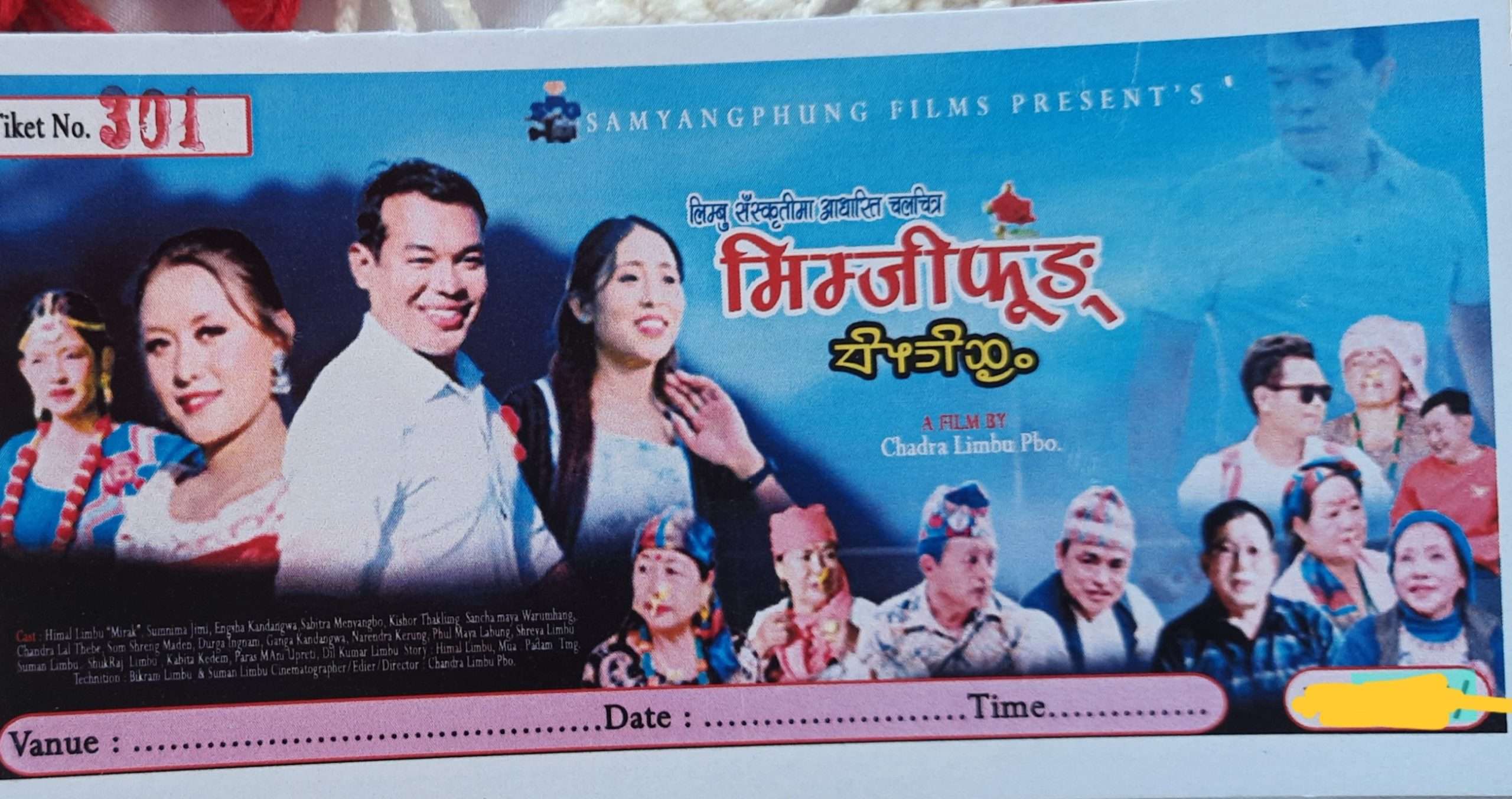 किरात याक्थुङ चुम्लुङ बिर्तामोडले आयोजना गरेको एक औपचारिक कार्यक्रममा निर्माता तथा कलाकार साबित्रा लाबुङले चलचित्र “मिम्जीफुङ” यहि मिती २०८२ साल बैशाख २९ गते बिर्तामोडको पाथिभरा सिने प्लाजा प्रीमियर सो प्रदर्शन हुने जानकारी दिदै सम्पुर्ण बिर्तामोड बासीहरुलाई चलचित्र हेरेर प्रतिक्रिया दिइ हौसला बडाइदिनु अनुरोध गर्नु भयो ।