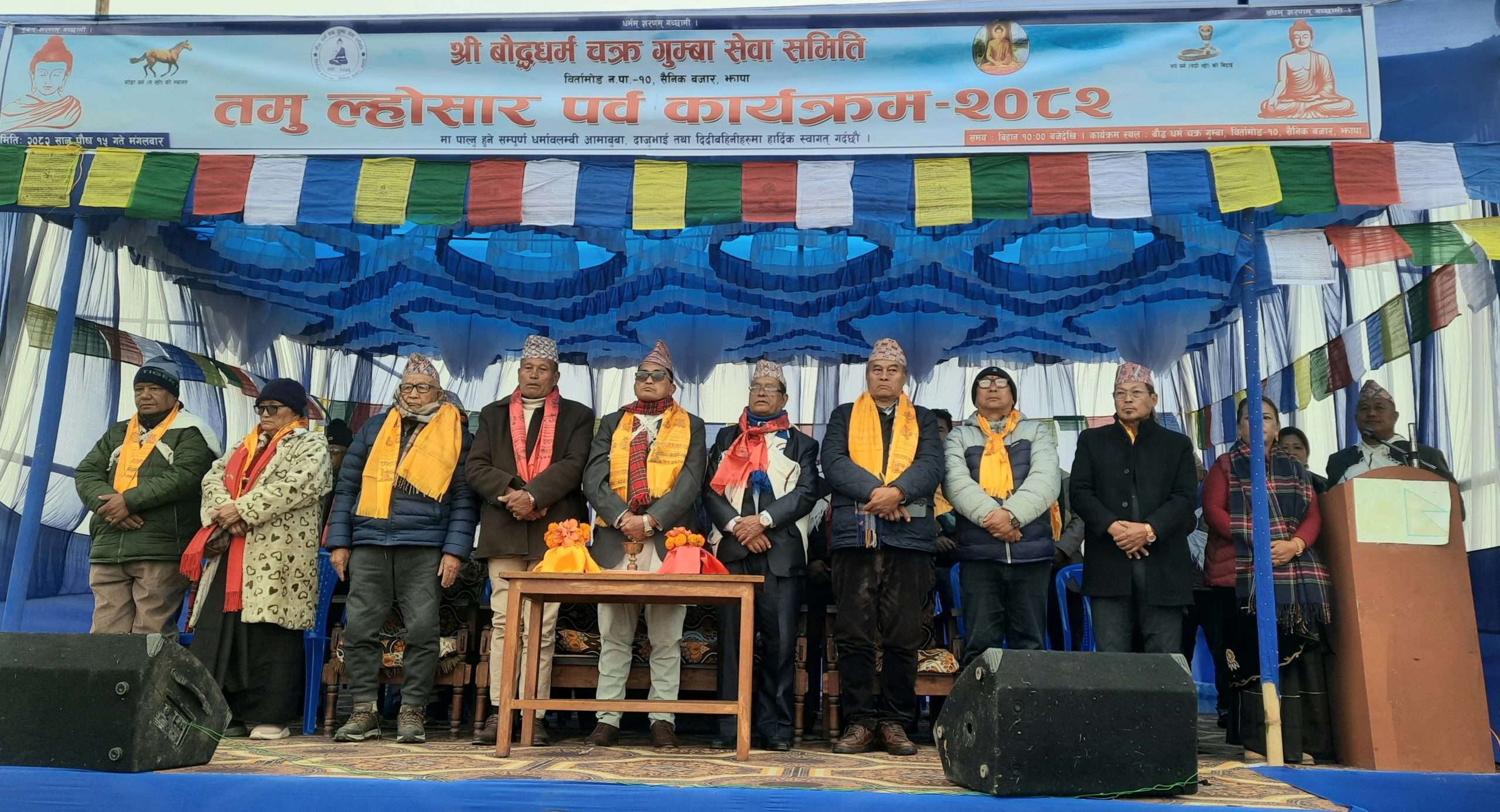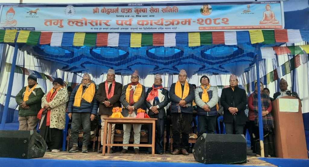 बिर्तामोड-१० सैनिक बजार अवस्थित बौद्धधर्म चक्र गुम्बा सेवा समितिले आयोजना गरेको तमु ल्होसार २०८२ पुस १५ गते बिहान बौद्ध धर्म अनुसार पुजा पाठ पश्चात एक औपचारिक कार्यक्रमका साथमा रोचक सांस्कृतिक कार्यक्रम सहित भव्य रुपमा सम्पन्न भएको छ।
