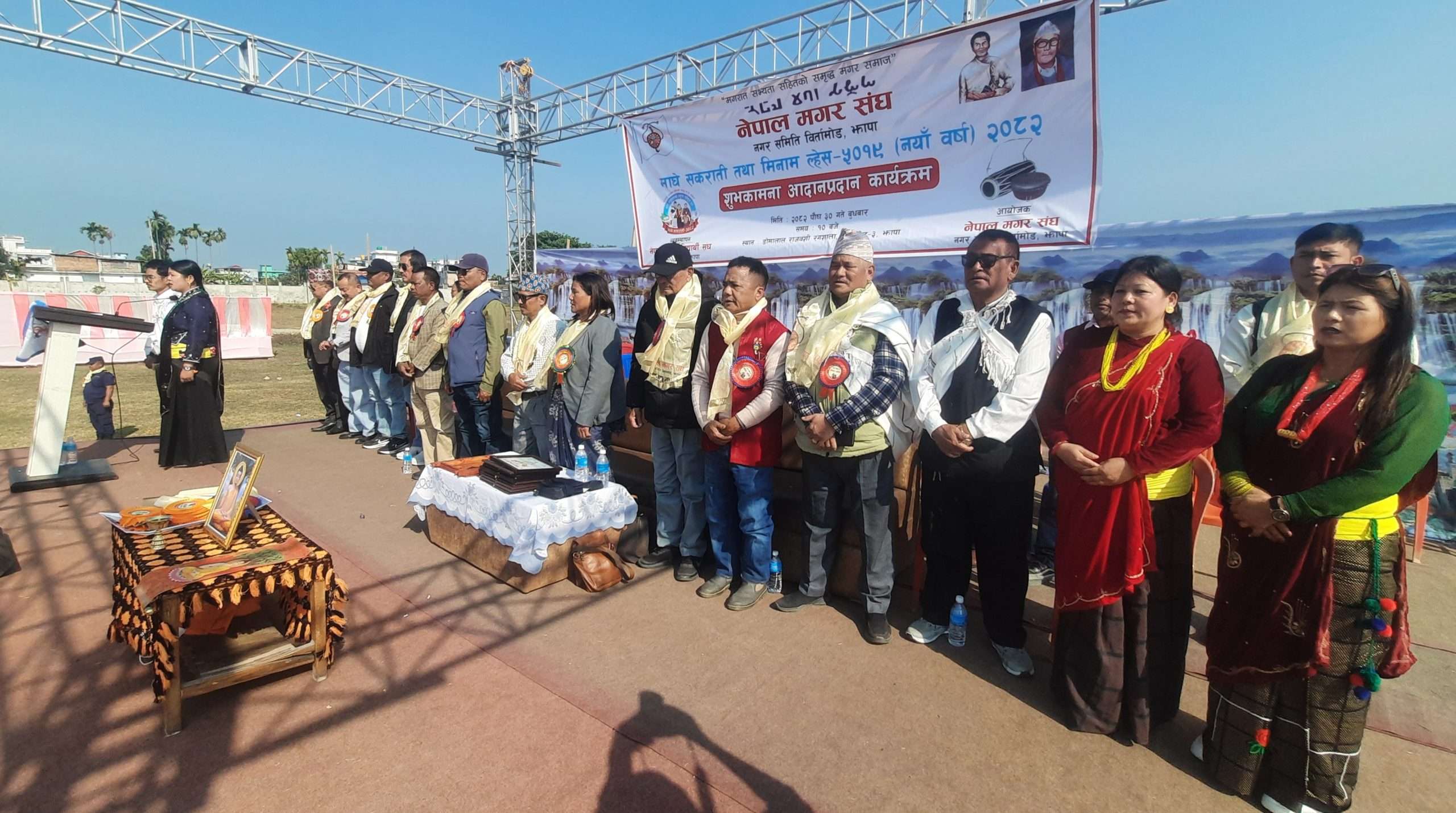 नेपाल मगर संघ झापाको आयोजना तथा नेपाल मगर विद्यार्थी संघ झापाको व्यवस्थापनमा “मगरात सभ्यता सहितको समृद्ध समाज” भन्ने मूल नारासहित मगर जातिको महान पर्व माघे सकराती तथा मिनाम ल्हेस–५०१९ (नयाँ वर्ष) बिर्तामोड–३ स्थित डोमालाल राजवंशी रंगशालामा भव्य रूपमा सम्पन्न भएको छ।